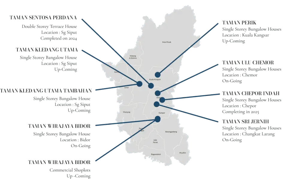 Explore our project map showcasing the reach of Allstar Capital Sdn Bhd across Perak. The map highlights each development site, detailing the number of units and the current project status. From completed handovers to ongoing constructions. This transparent overview reflects our commitment to delivering quality homes and commercial spaces, driving growth in communities throughout the state. Discover where we are building the future of Perak, one development at a time.